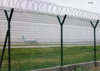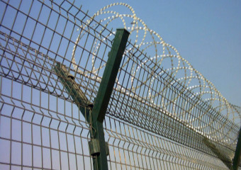 机场护栏网又称作“Y型安全防御护网”,是由V型支架立柱加强型焊接片网,安全防盗连接件和热镀锌刀片刺网组成强度和安全防御性级别很高。被广泛应用在机场,军事基地等高安全场所。如果在机场护栏网顶部加装刀片刺丝、刀片刺网后又很好的增强了安全防护性能。